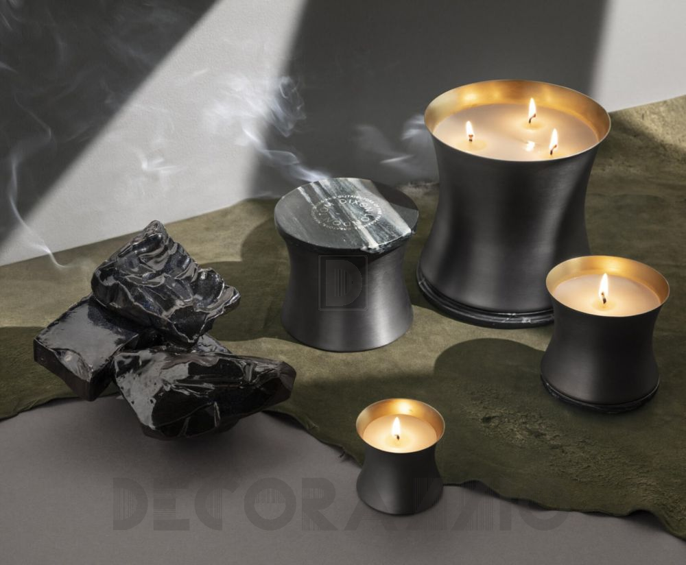 Под влиянием бесконечных поисков превращения основных материалов в ценные вещества острый черный перец, древесный кипарис, эвкалипт, экзотические пачули и дымное гваяковое дерево объединяются в драгоценный аромат алхимии. Заключен в сосуд ручной прядения из матовой латуни с черной патиной, с твердой крышкой из черного мрамора Удайпур.