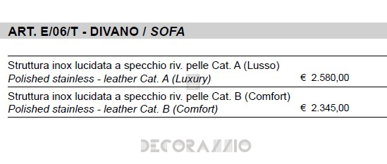 Диван Sigerico ART. E/06/T SOFA Плоский каркас из полированной нержавеющей стали, наполнение подушек поролон, обитый кожей, отделка капитоне.