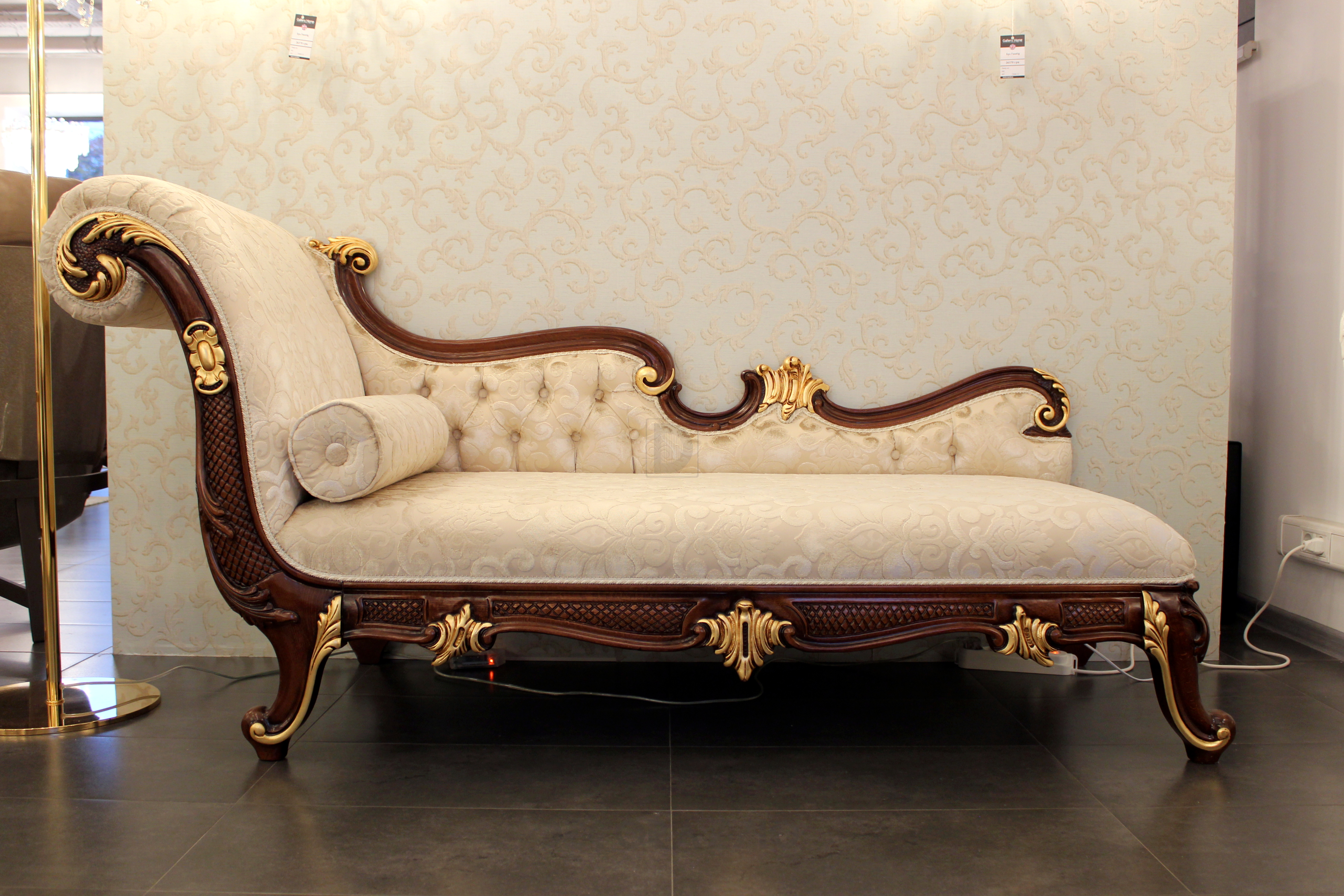 Кушетка в бежевой ткани.