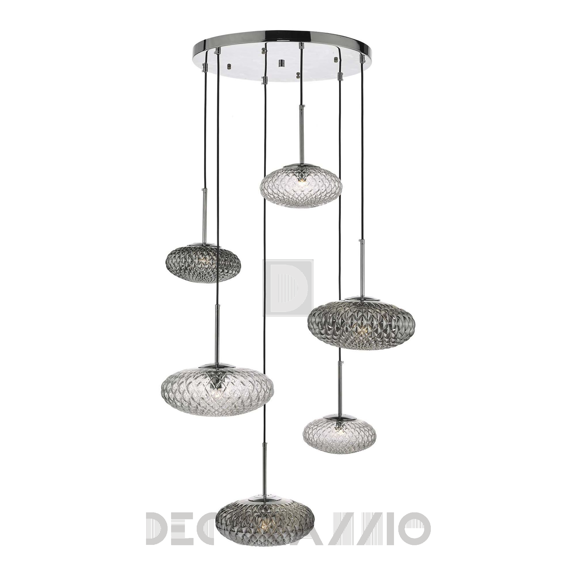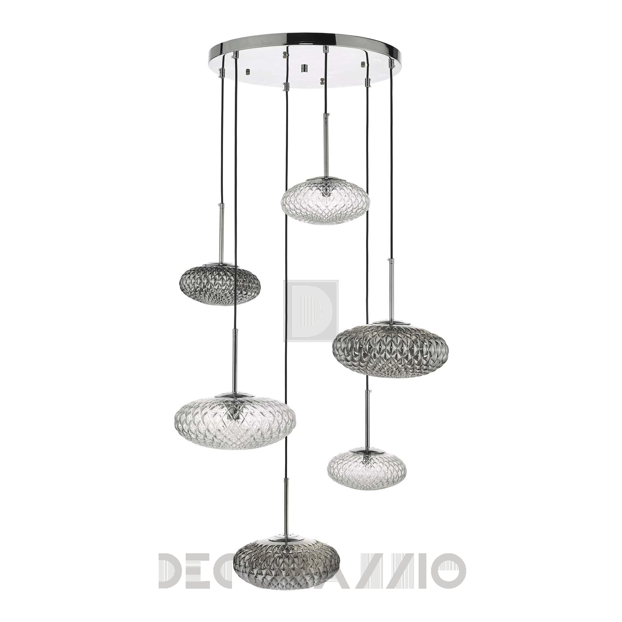 Люстра Bibiana напоминает большую подвеску из дымчатого и прозрачного текстурированного стекла с полированной хромированной отделкой, которая прекрасно играет со светом, создавая в помещении привлекательные тени и отражения. Такая впечатляющая обстановка, станет главным элементом любой комнаты. В коллекции так-же представлены настенные и настольные лампы. Длинна регулируемая: от 70 см до 300 см
