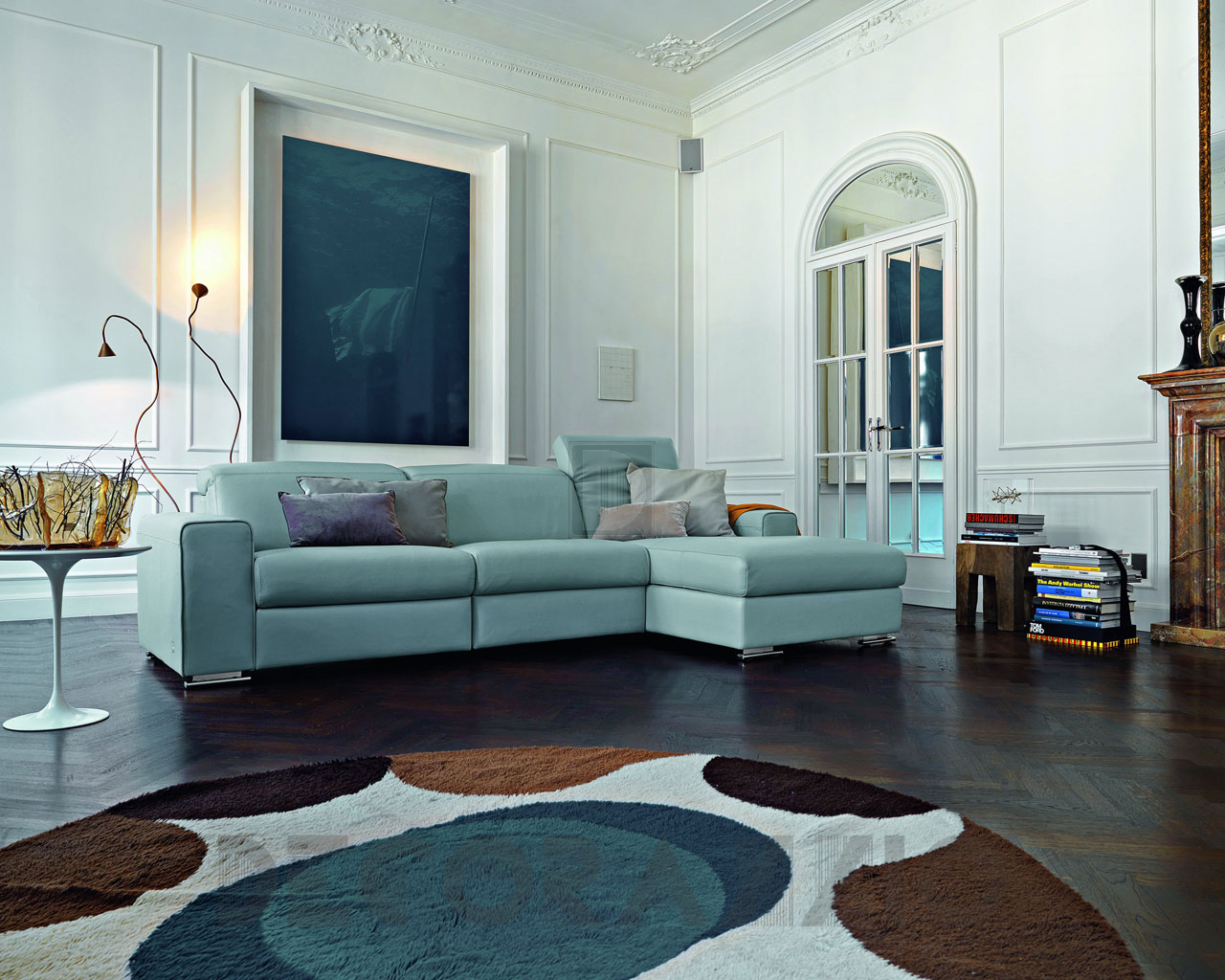 Элегантный модульный диван в современном стиле Andy. Механизм дивана позволяет менять положение отдельных частей. Каркас дивана изготовлен из дерева, кожаная обивка (доступны различные цвета), набит полиуретаном.