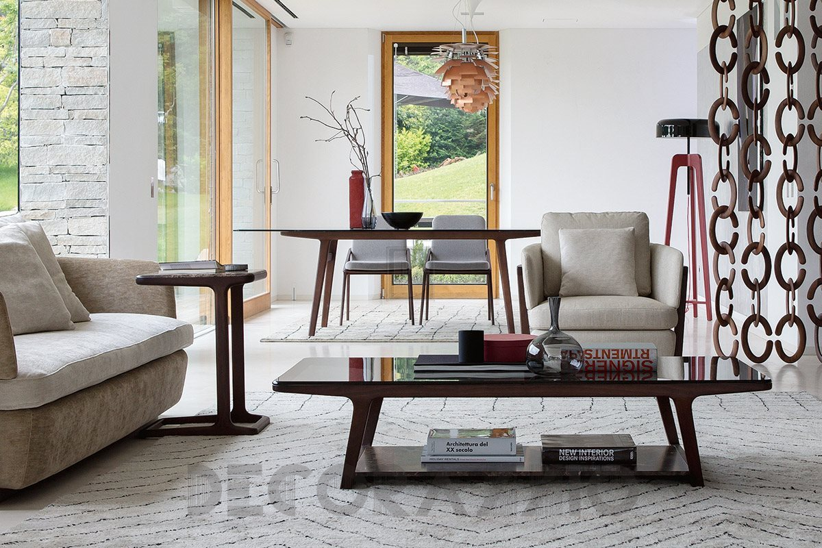 Script от Porada – серия приставных столов для различных интерьеров в современном стиле с каркасом из массива дерева ясеня. Варианты дизайна: одна столешница из мрамора или с нижней полкой из мрамора и верхом из закаленного стекла. Мрамор можно выбрать белый или темный, деревянная отделка – натуральный ясень, натуральный орех, мока, венге.