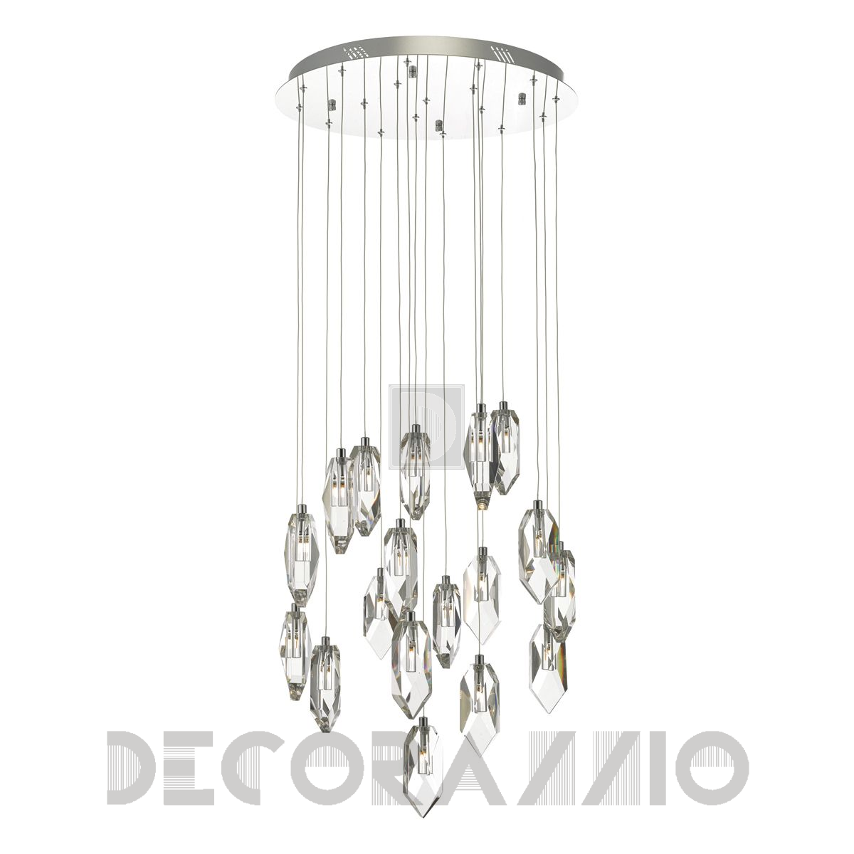 Люстра коллекции Crystal представляет собой группу ограненных горных кристаллов, которые ниспадают на тонких нитях с полированной хромированной потолочной пластины. При освещении они создают красивый эффект призмы через кристалл. Поставляется в комплекте с высокоэффективными светодиодными лампами G4.