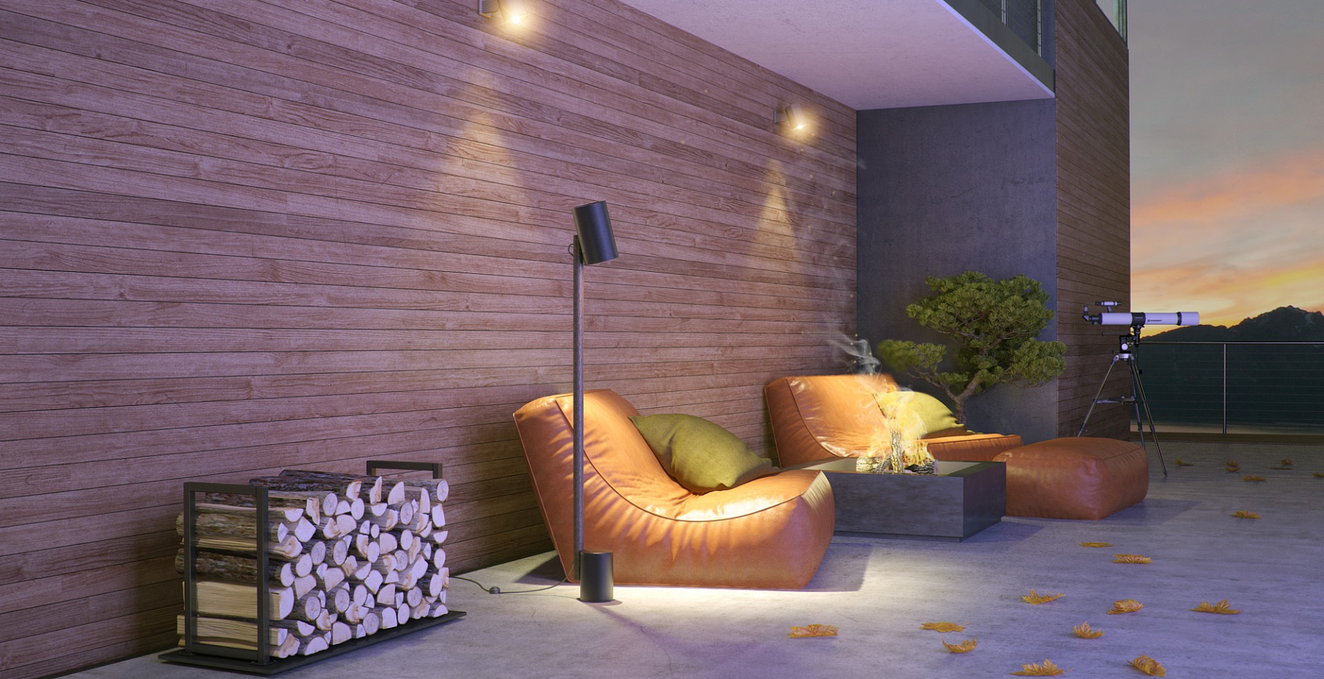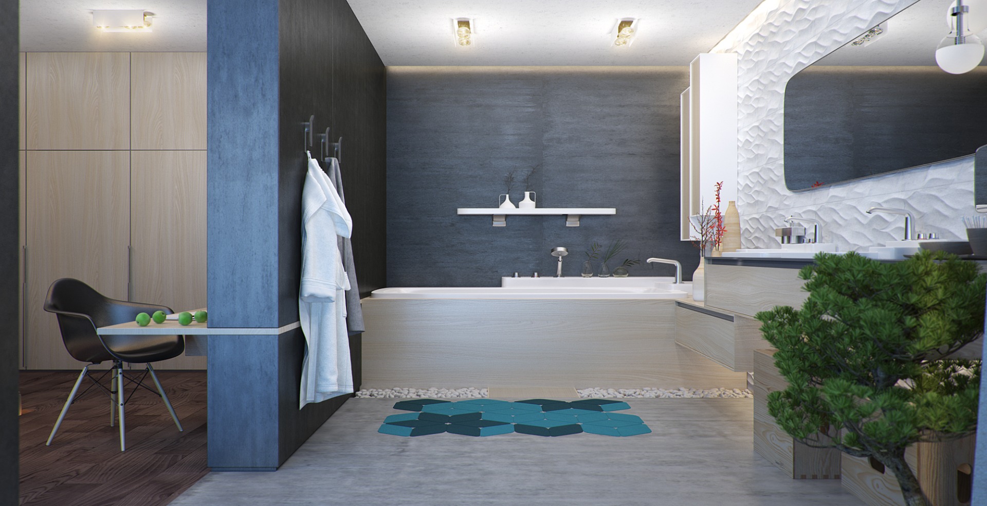 - гостиная, ванная, столовая, кухня, спальня, терраса