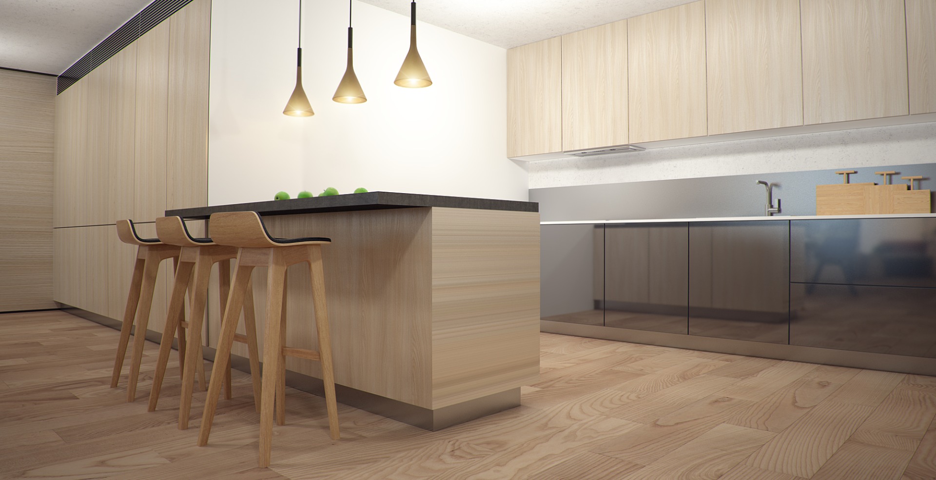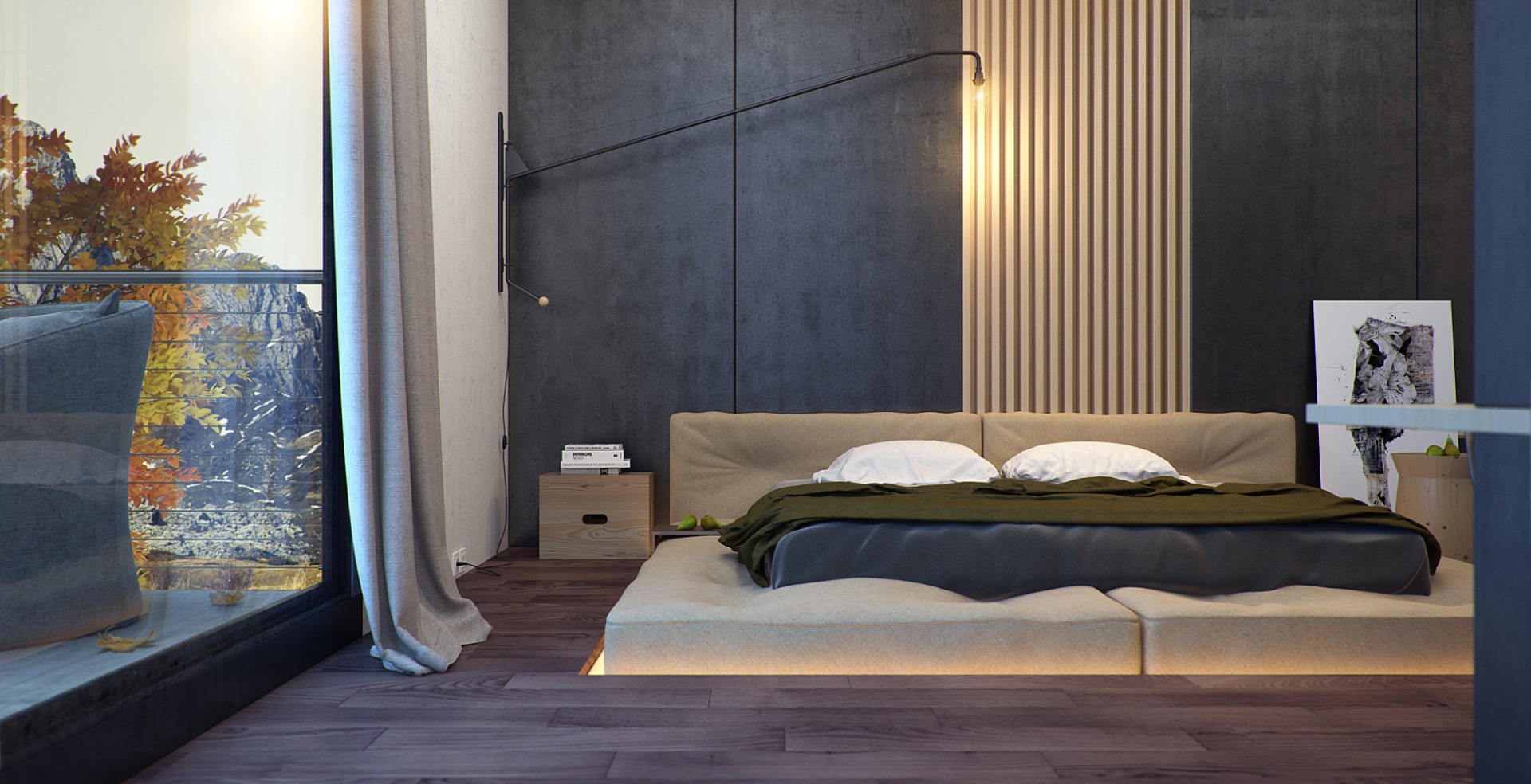 Дом площадью 200 кв. метров располагается в Крыму. Из окон резиденции открывается вид на горы и на море. Естественно, хозяева не хотели никакой искусственности в атмосфере. Интерьер должен быть продолжением ландшафта. Дизайнеры студии Ruslan Kovalchuk учли эти пожелания. В качестве напольного покрытия использовали массив дерева, стены в гостиной-столовой облицованы натуральным камнем, в спальне отделаны брусками сосны, кожаная мебель и ковры из шерсти дополняют эту природную обстановку.