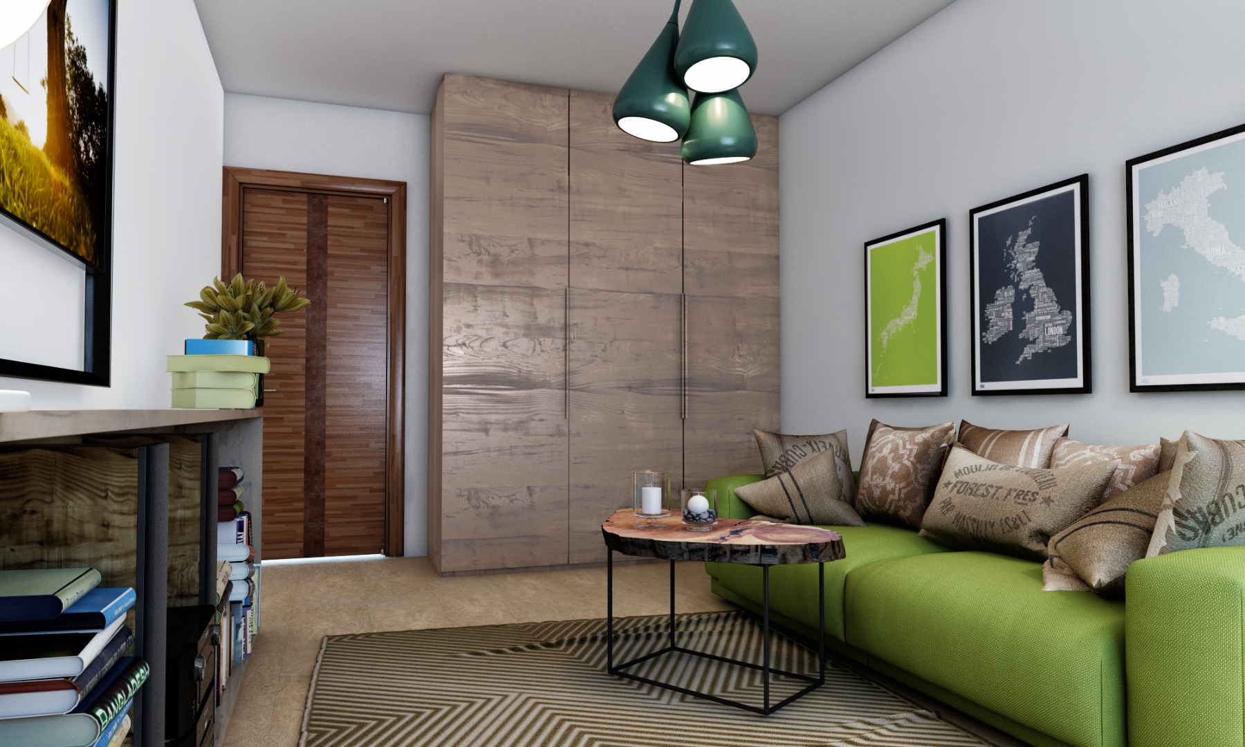 - гостиная, кухня, ванная, спальня