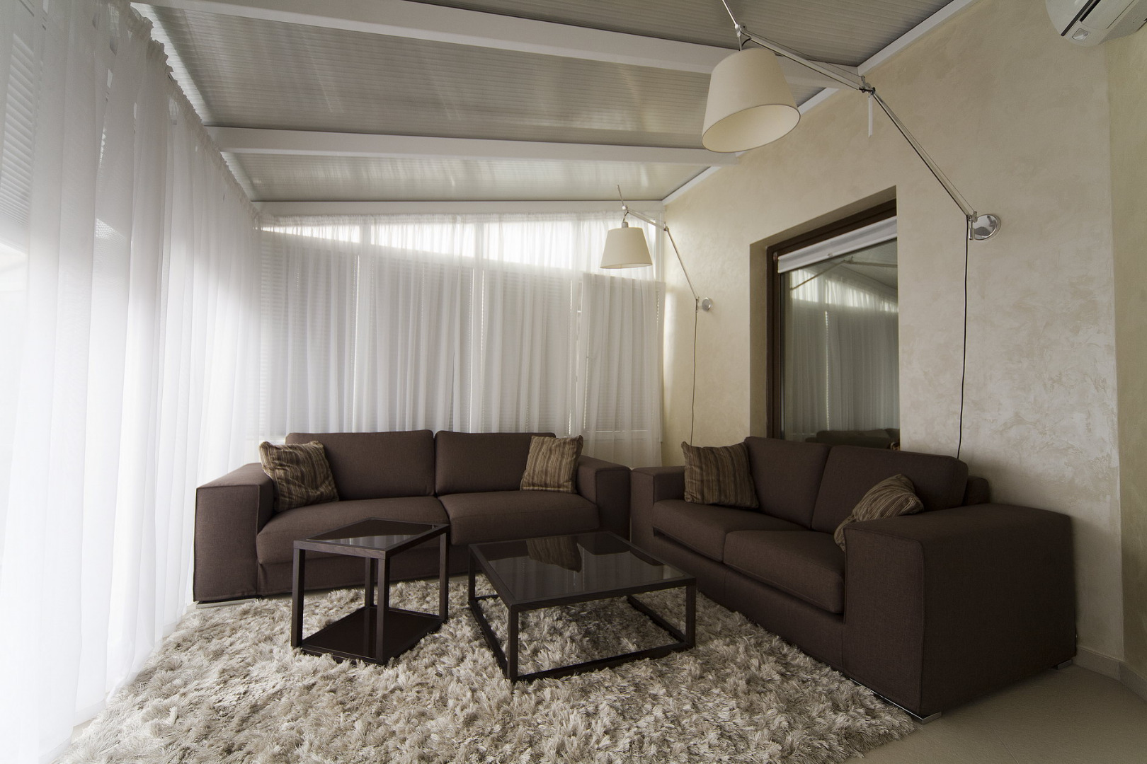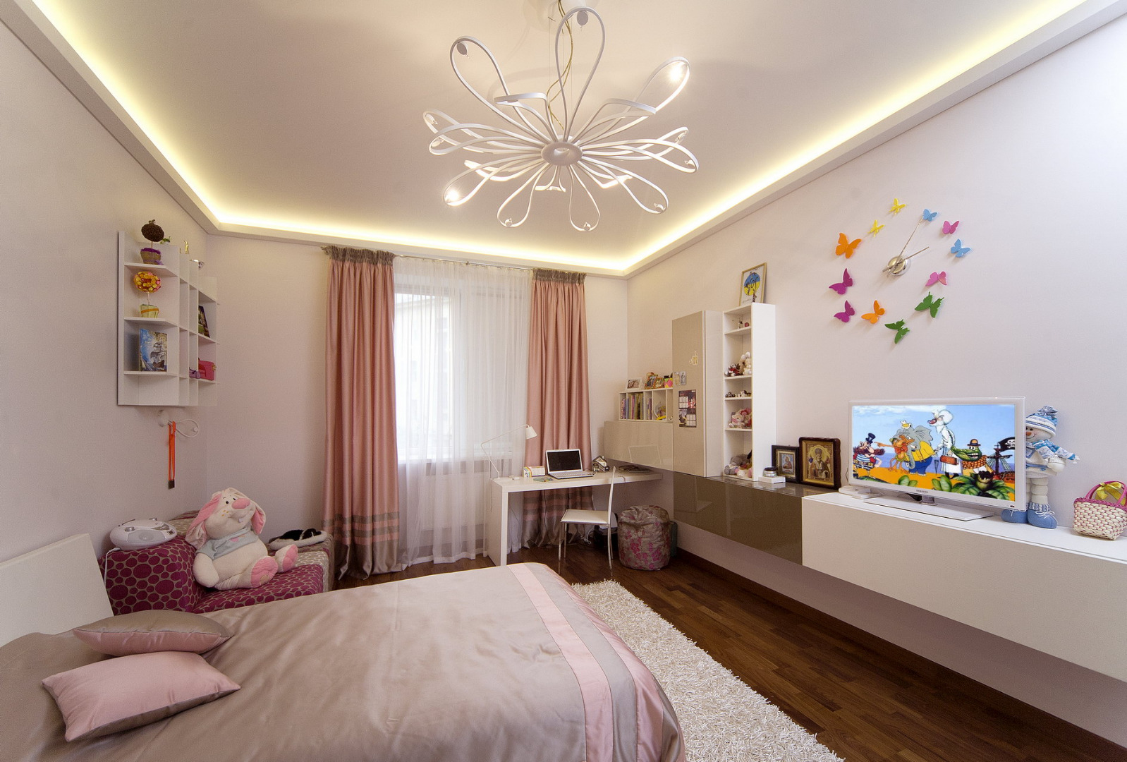 Стена, возле которой стоит аквариум, это междуквартирная стена. Справа от аквариума проход в спальную зону. Там расположены детские, спальня и игровая комната, она же гостевая, она же зимний сад. Используется чаще в качестве игровой комнаты для детей. Кстати в гостиной есть выход на открытую террасу. Там стоит плетеная мебель и летом на ней очень комфортно отдыхается.