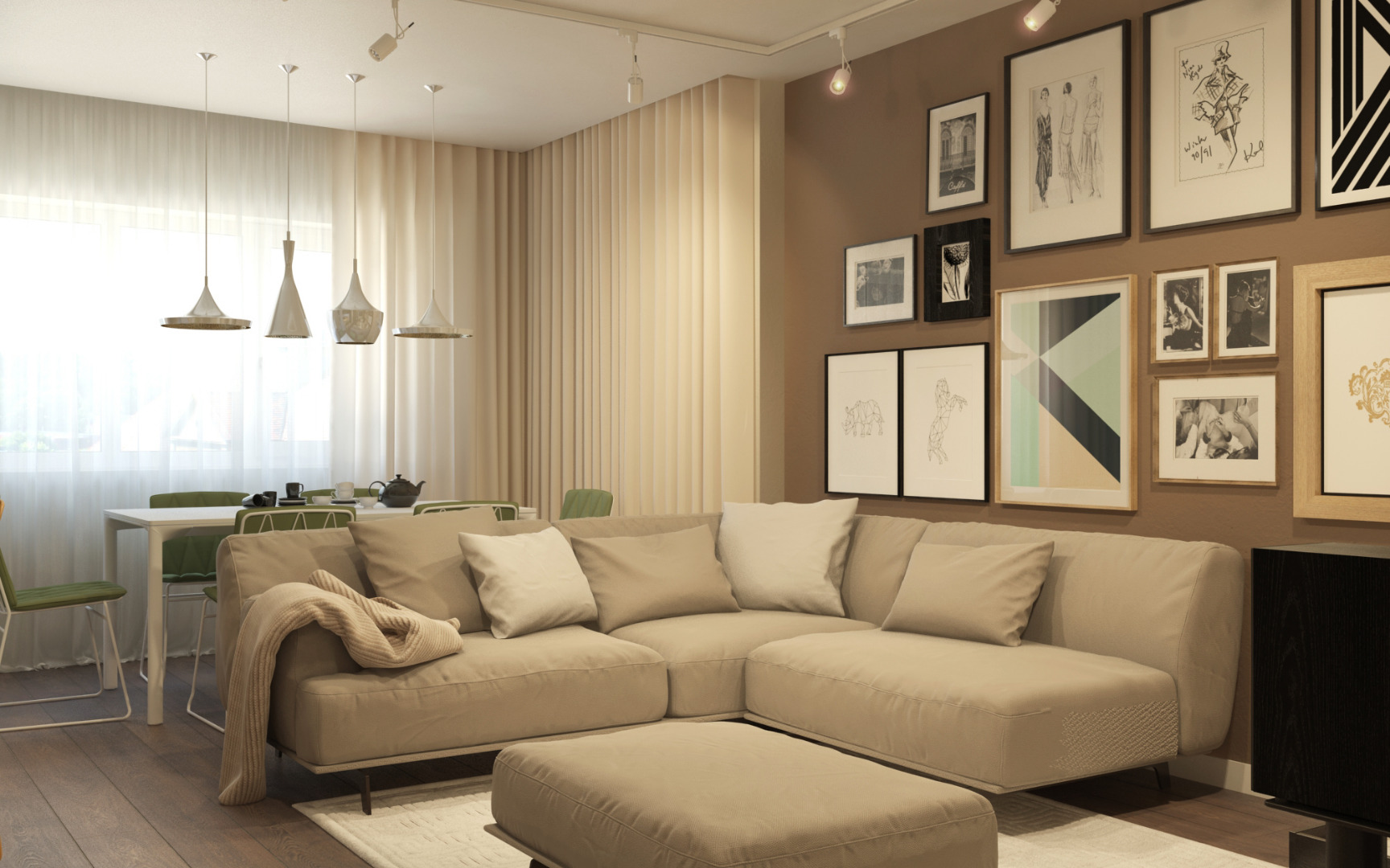 гостиная, столовая, кухня, прихожая