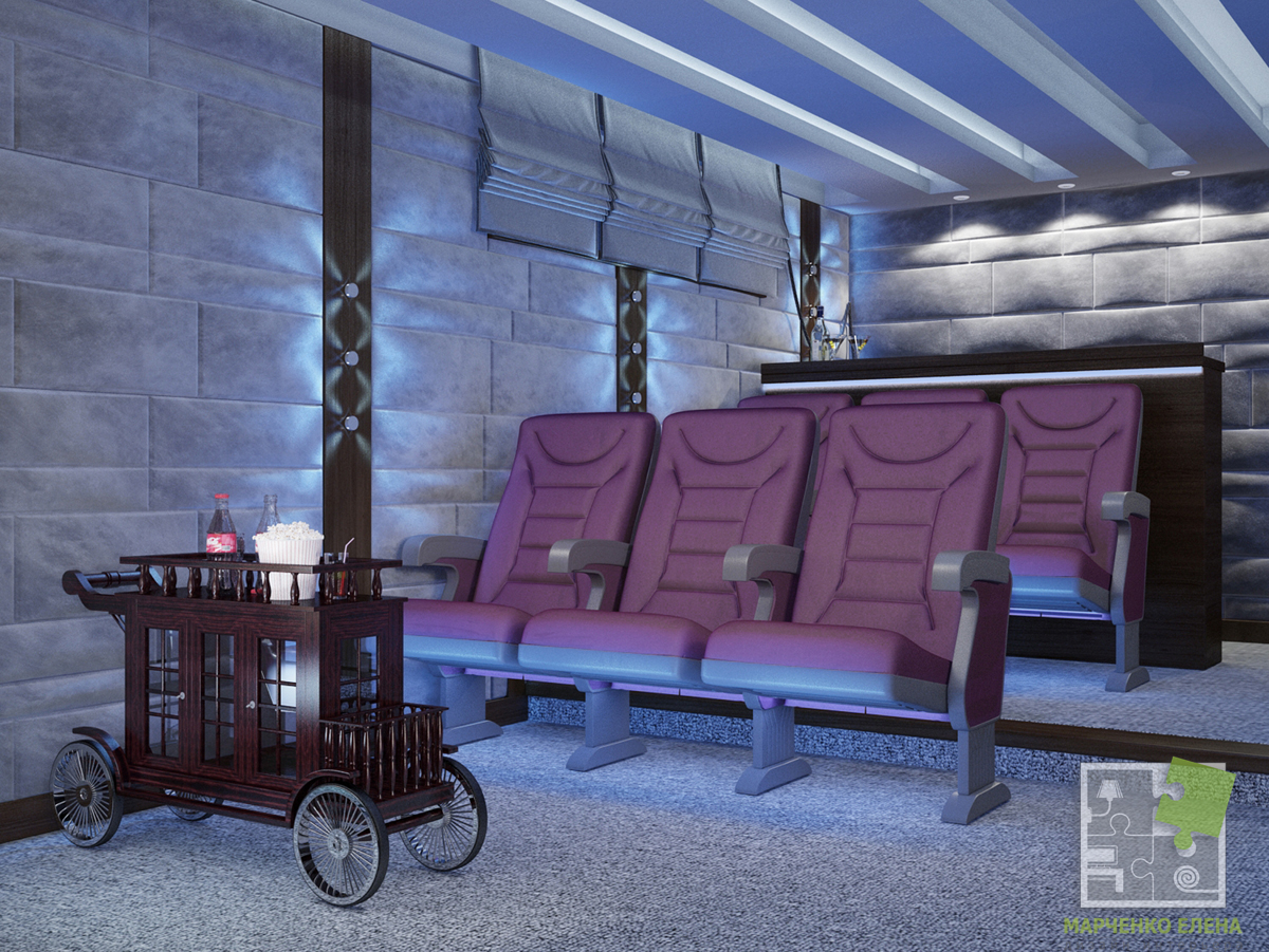 Домашний кинотеатр в частном доме на 6 посадочных мест с барной стойкой