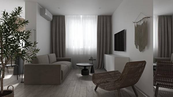 Задача была создать относительно недорогой, и современный интерьер, в котором будет уютно жить. Квартира изначально планировали под аренду.